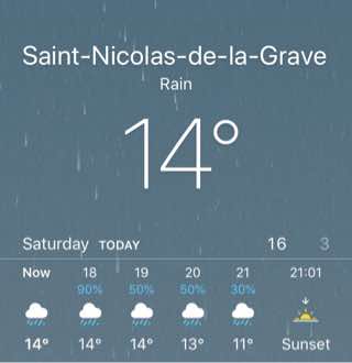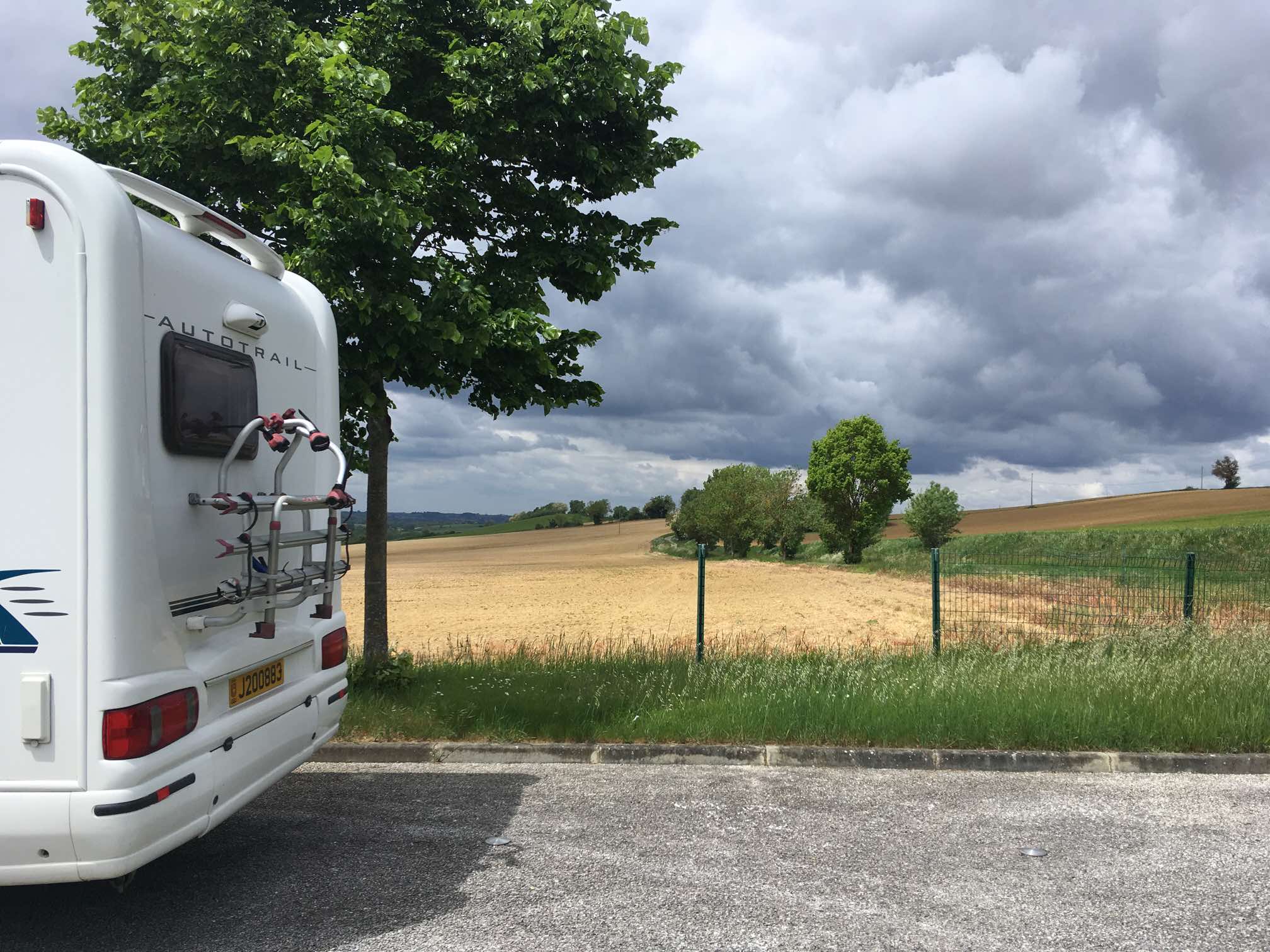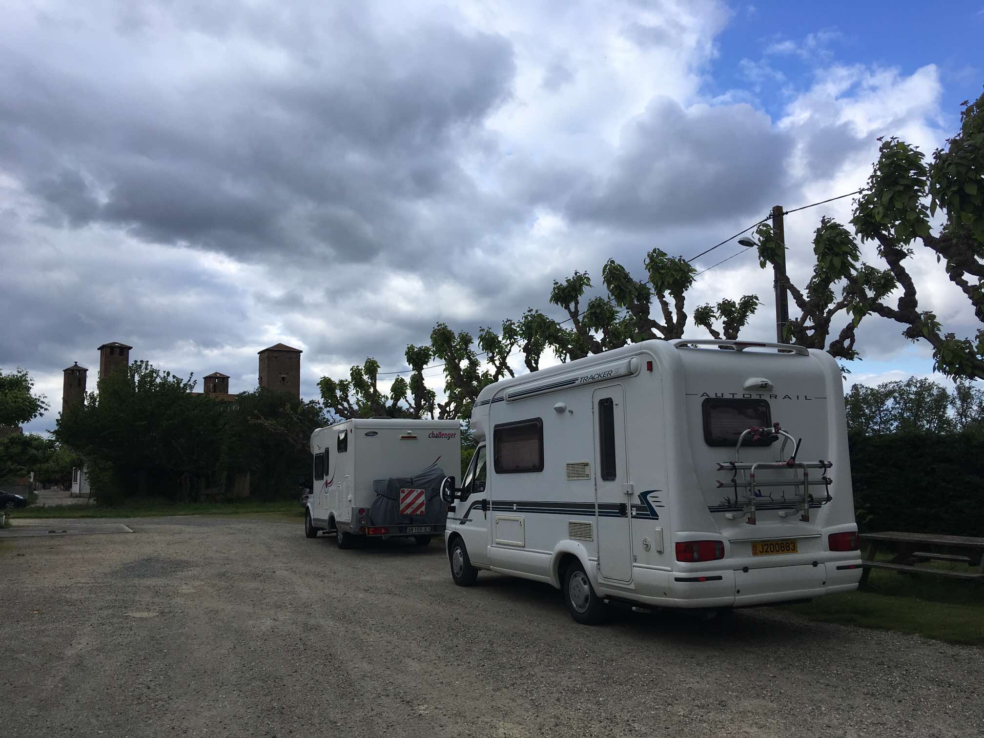 I mentioned earlier my masterlist of successful stops and tonight is a case in point. We’ve now pitched up at Saint Nicolas de la Grave’s modest motorhome aire, where we stayed three years ago, also in May. There are three other vans in this carpark on the edge of the small town, but it’s green, has picnic benches and is very quiet. The only viable way to park is nose to tail, but with sufficient personal space, and if we have to park up with others, this is by far the best way for us, much reducing the risk of eyeballing each other or hearing people’s TV or music, as whilst the vast majority of motorhomers are quiet as mice, not everyone is considerate in this respect.