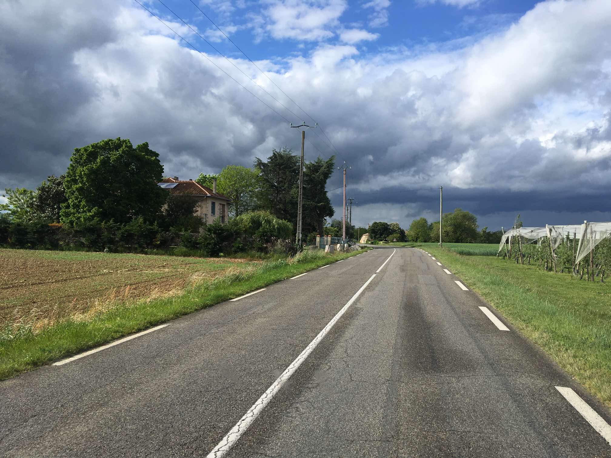 We left after poached eggs on toast a la Sophie and continued on our motorhoming guidebook’s “Toulouse et les coteaux de Gascogne” tour, but without the Toulouse bit, as it didn’t fit with our route in general. We firstly checked out my overnighting possibles for last night, of which two out of three would have been excellent, and have now been added to our masterlist of all spots assessed personally by us as very suitable for staying over.