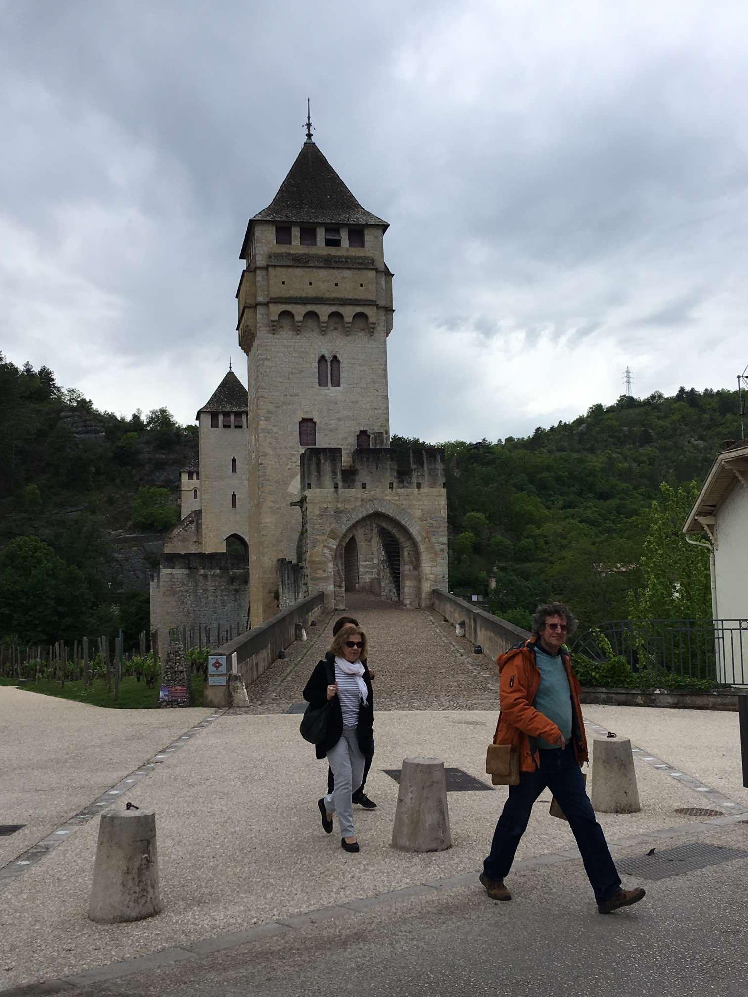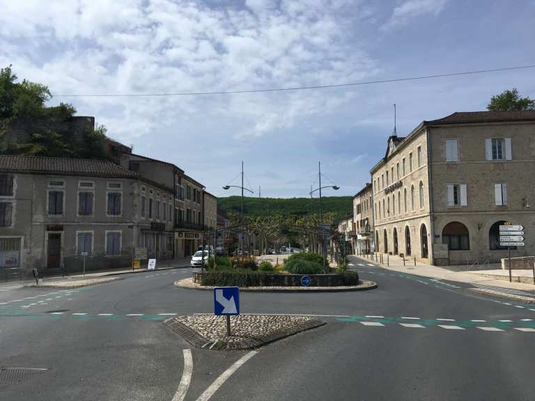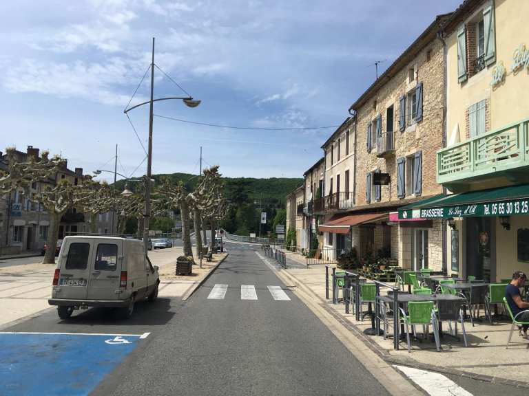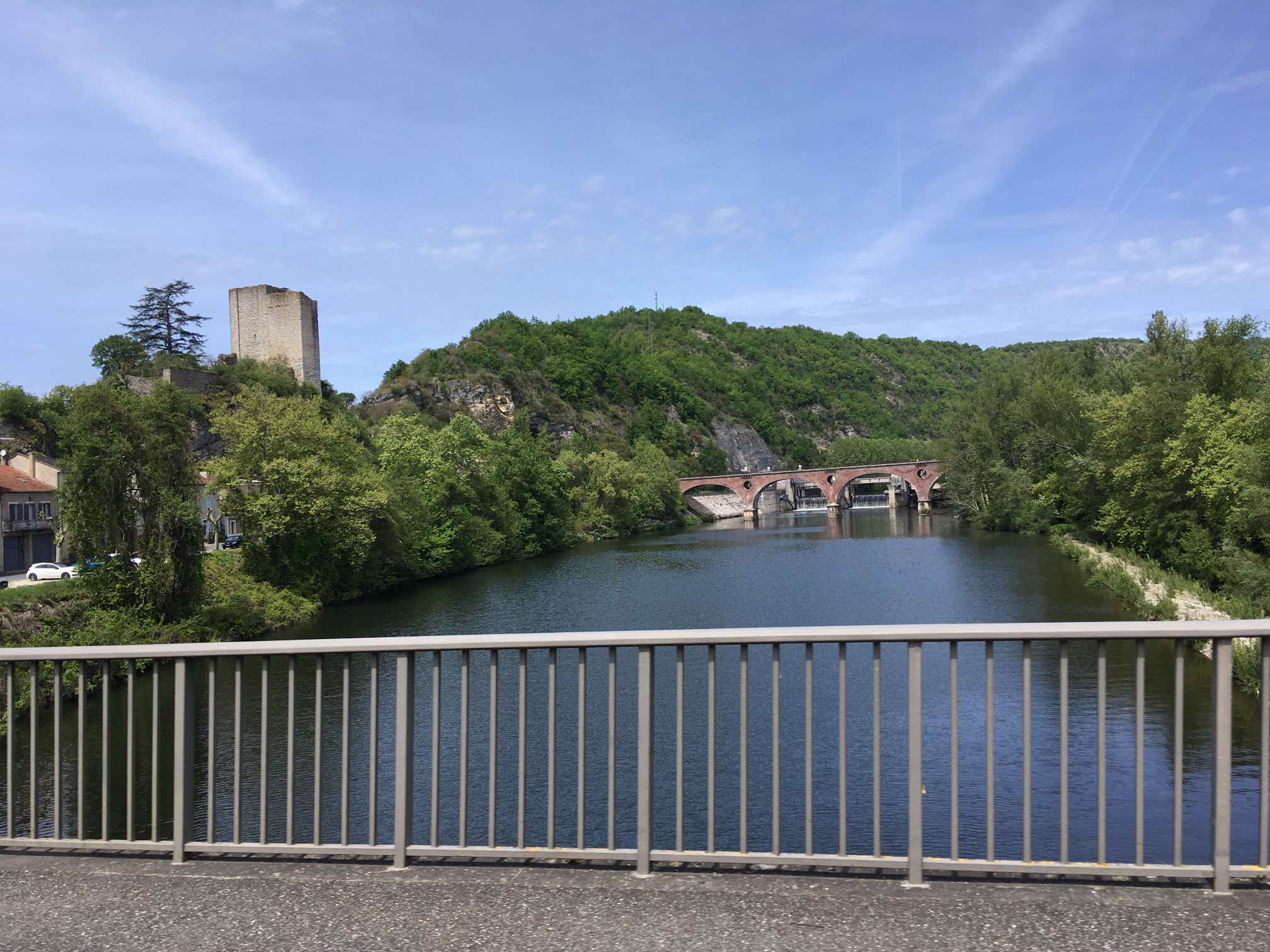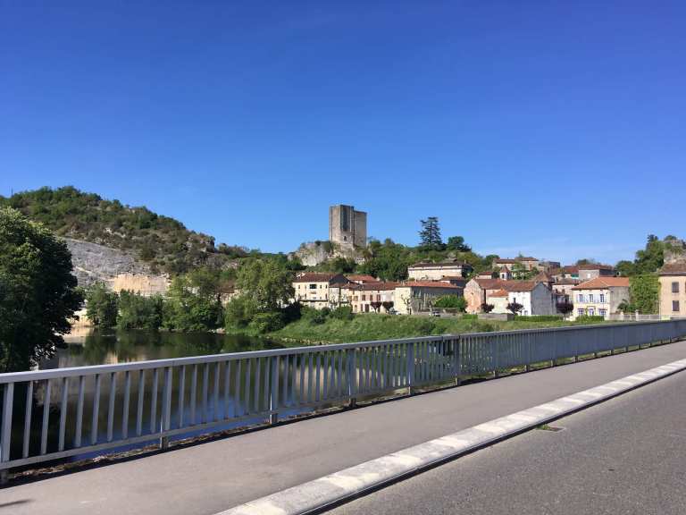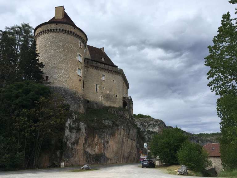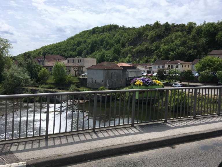 After a walk round the backstreets and then making good use of Luzech’s motorhome services, we continued our meandering along the Lot. We popped into Cahors, somewhere we’d visited a few years ago, and had a much-needed restock in Lidl. Sophie also wanted to achieve a drive-by of the town’s iconic ancient La Valentre bridge. We had a good mooch around it last time so there was no need to get out the van this time. In fact, I managed to drive by it three times due to a disagreement with the SatNav, so Sophie will have dozens of photos to sort through now.