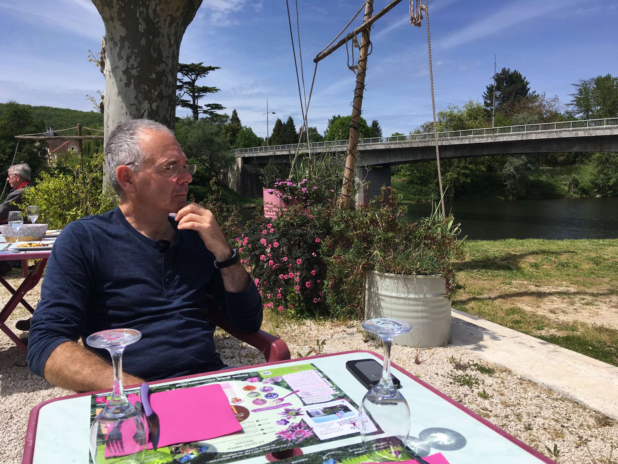 After a morning busy with the laptop, but with the bonus of being sat in the sun with that great view, we headed off to Luzech in search of a bargain lunch and a stroll round the town.