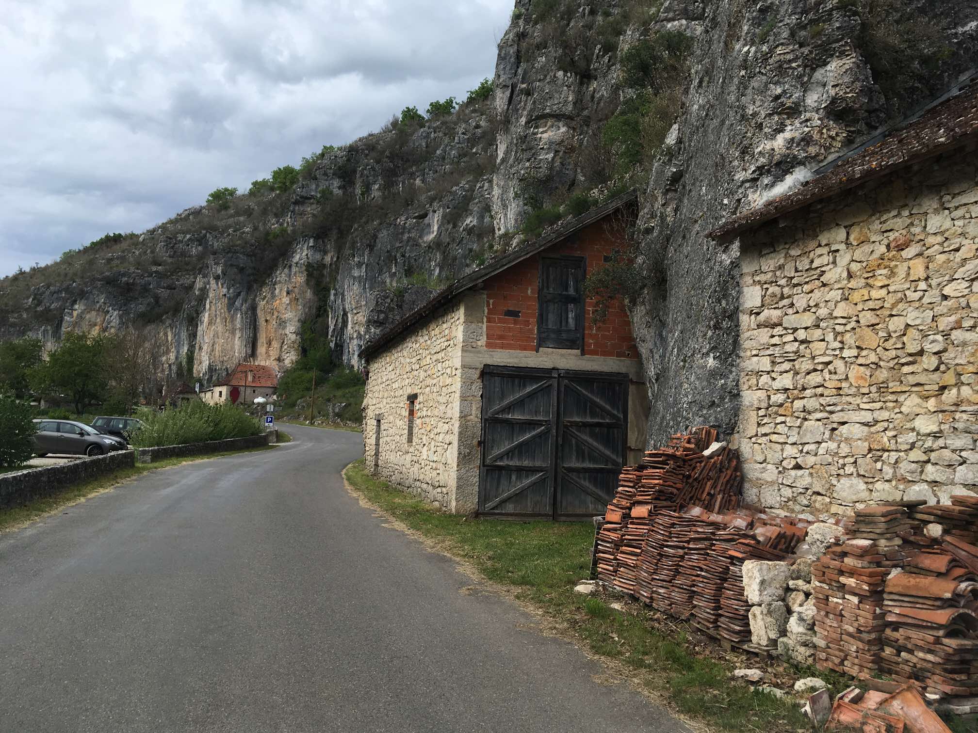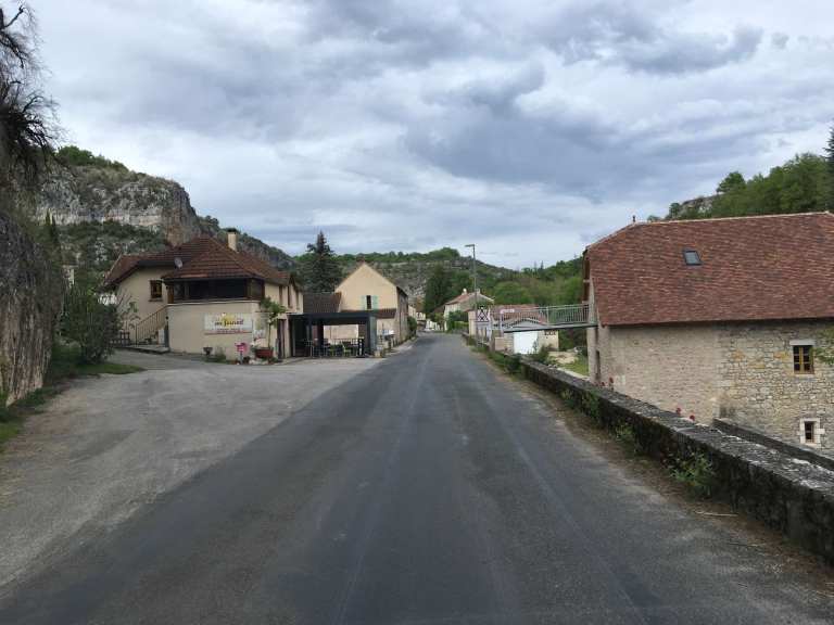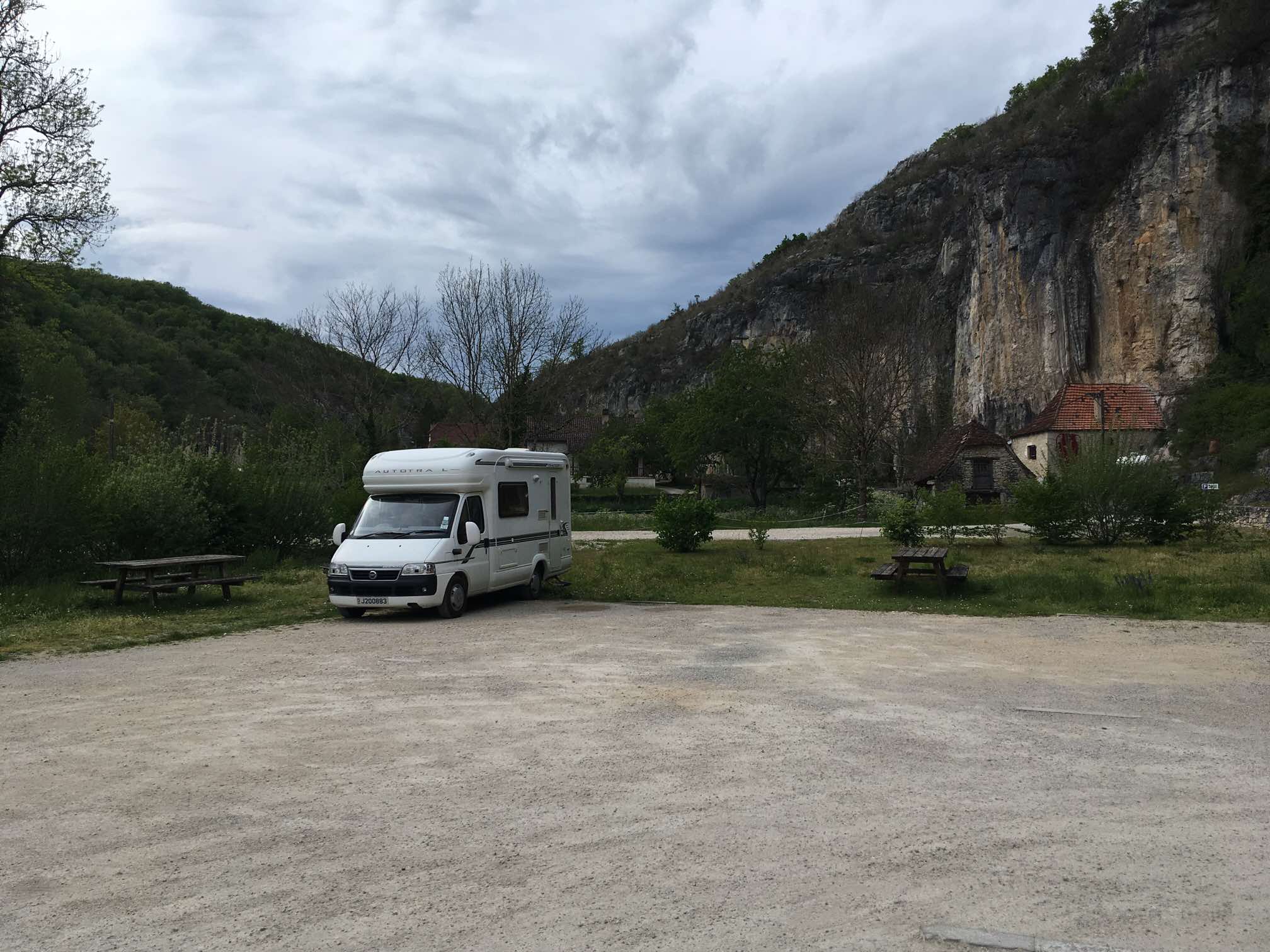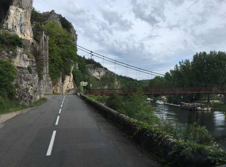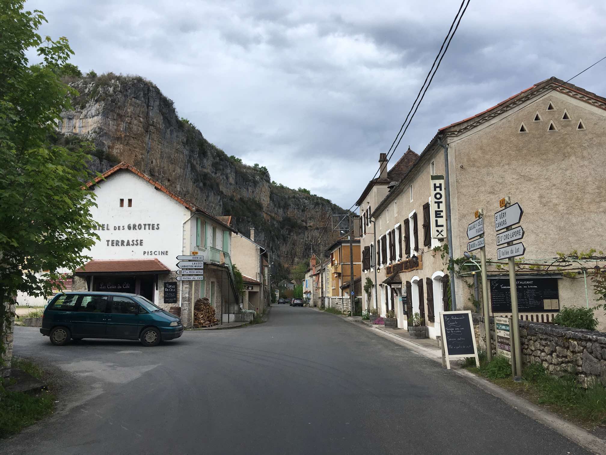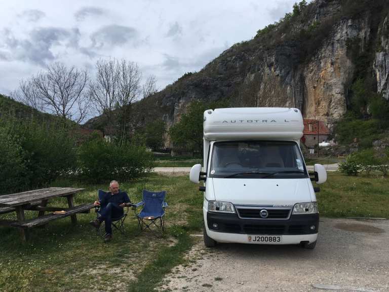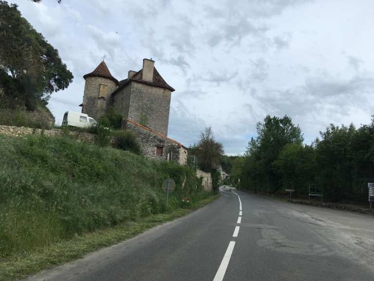 After getting caught up in some minor rush hour traffic we were back on our Lot Valley tour proper and enjoyed a drive along the North bank this time, continuing Eastwards. After the town of Bouzies, we hung a left and headed up the Cèlé Valley to Cabrerets, recommended by our Michelin guide, “Escapades en Camping-Car”.