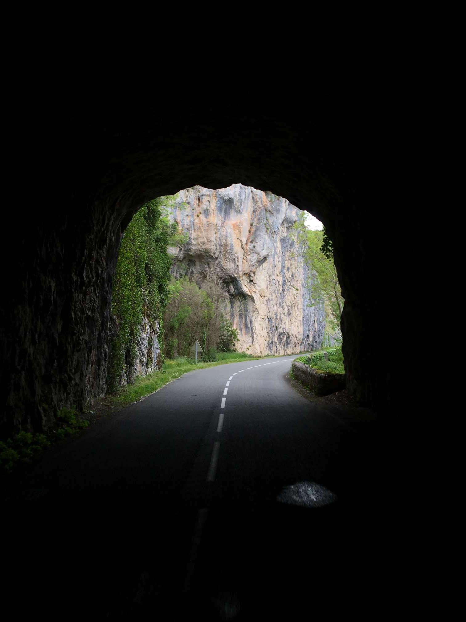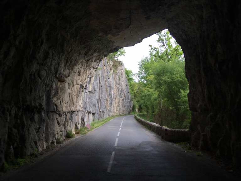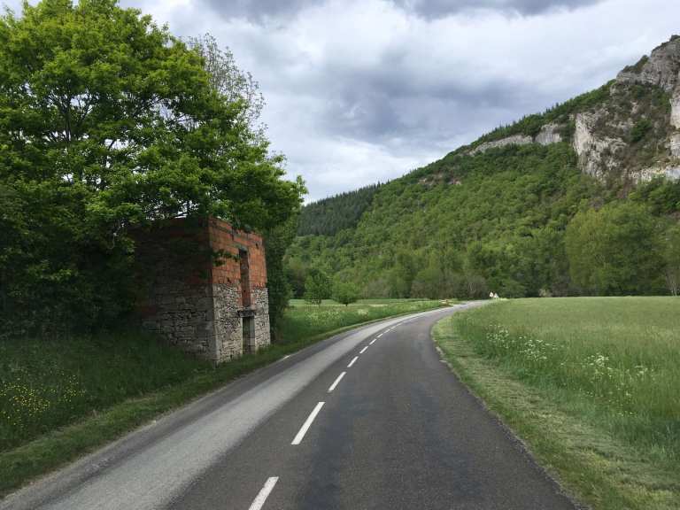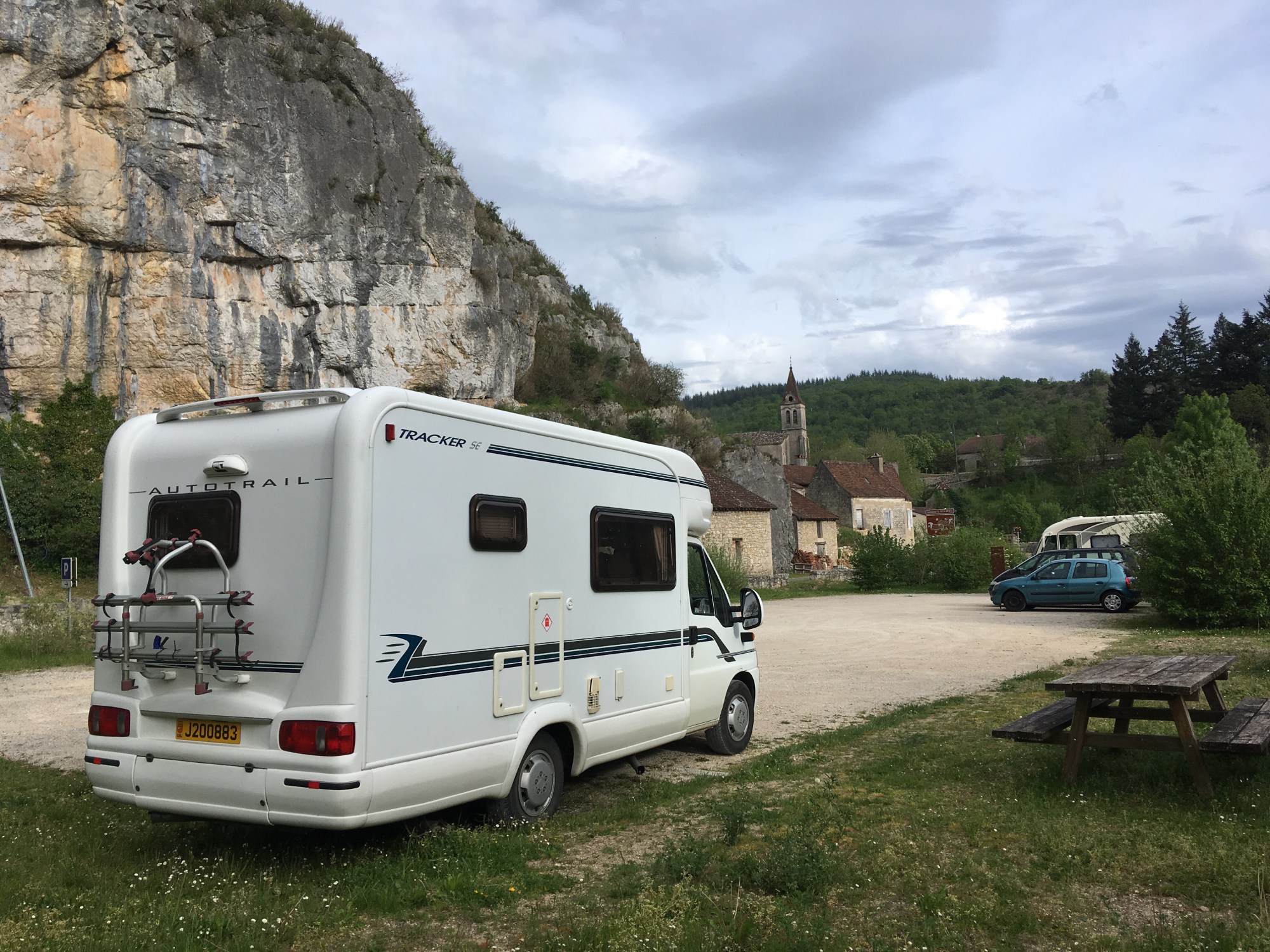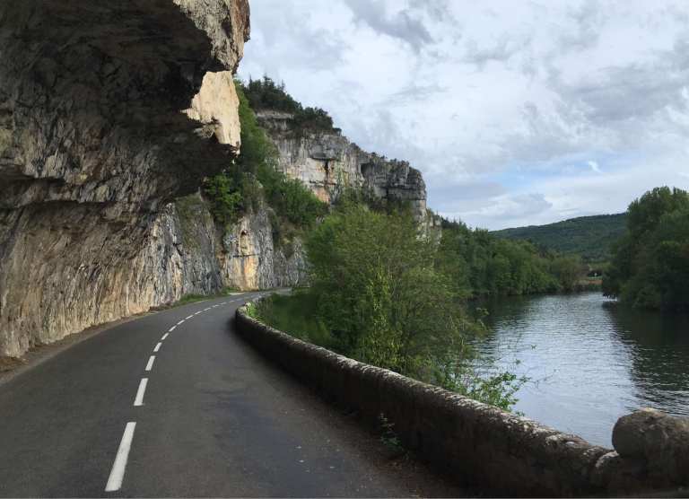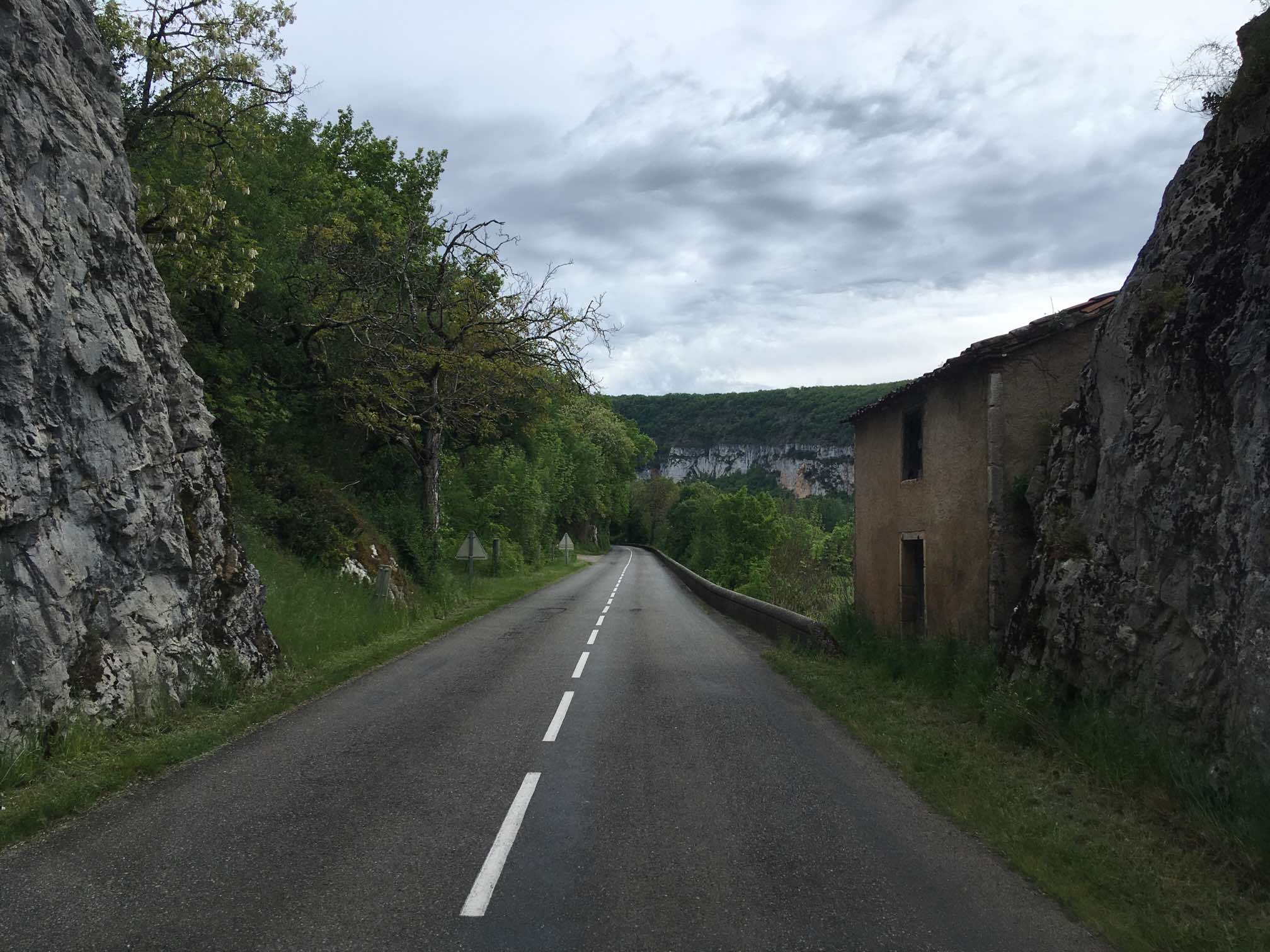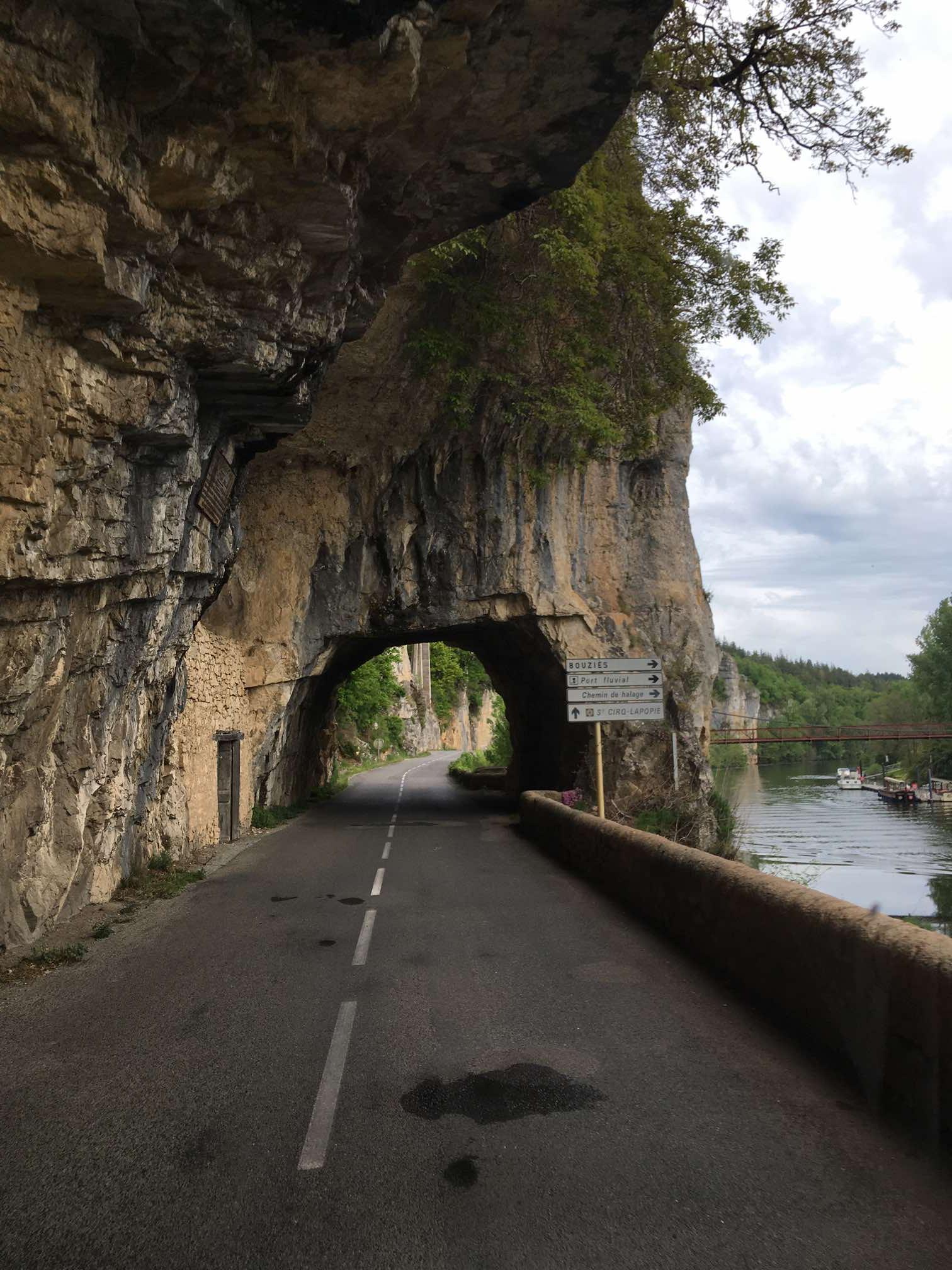 After getting caught up in some minor rush hour traffic we were back on our Lot Valley tour proper and enjoyed a drive along the North bank this time, continuing Eastwards. After the town of Bouzies, we hung a left and headed up the Cèlé Valley to Cabrerets, recommended by our Michelin guide, “Escapades en Camping-Car”.