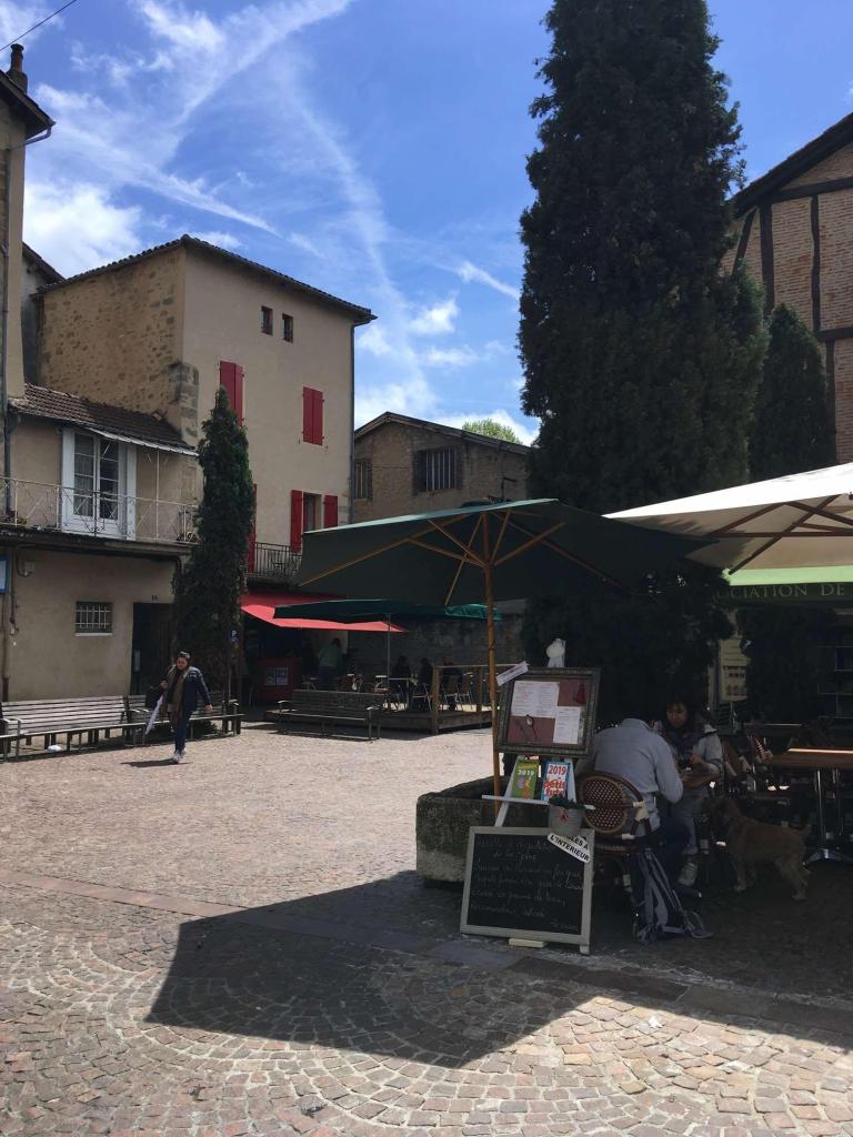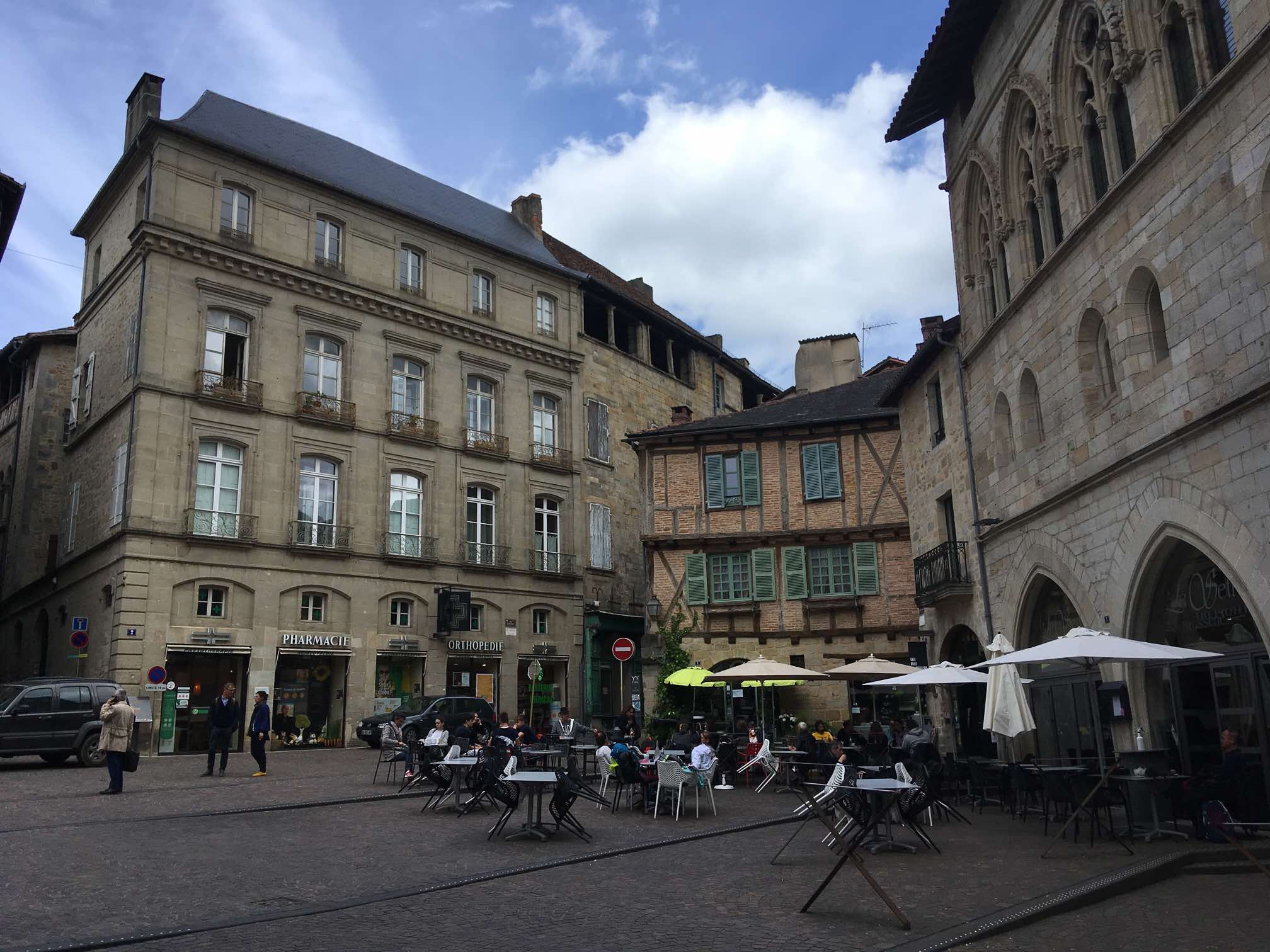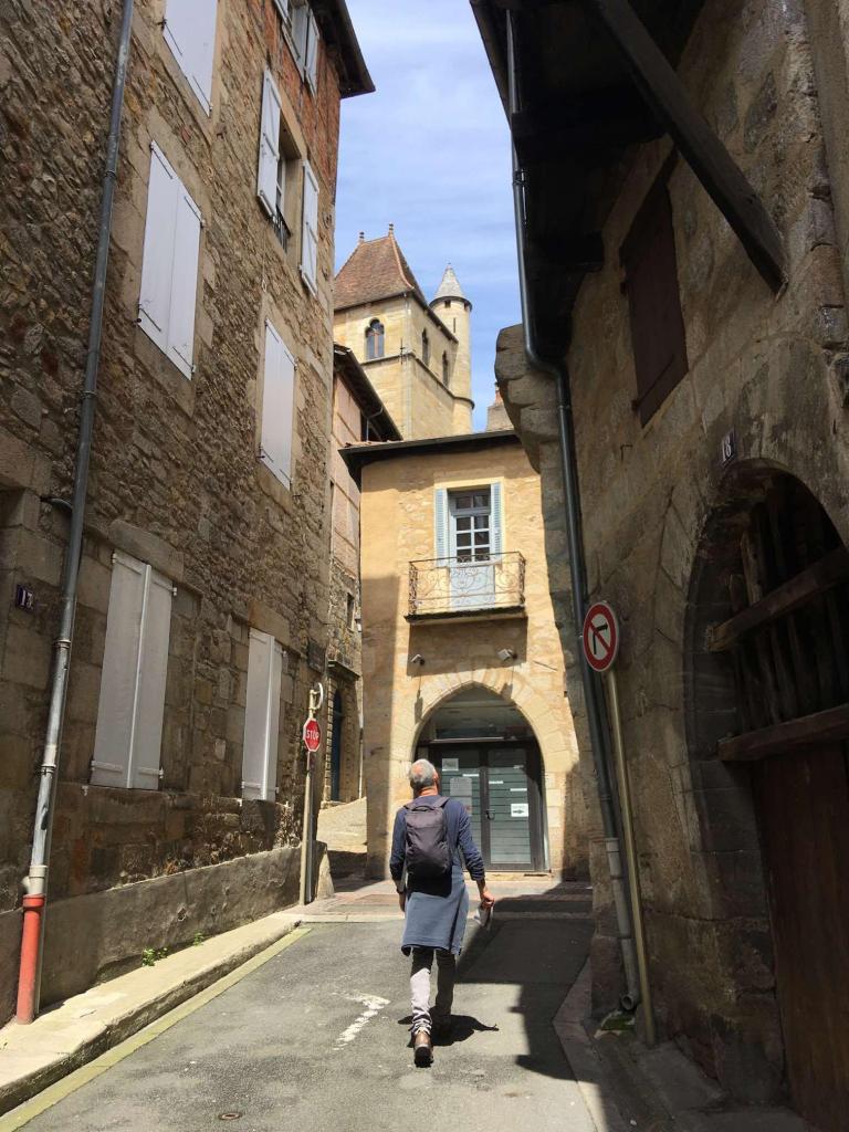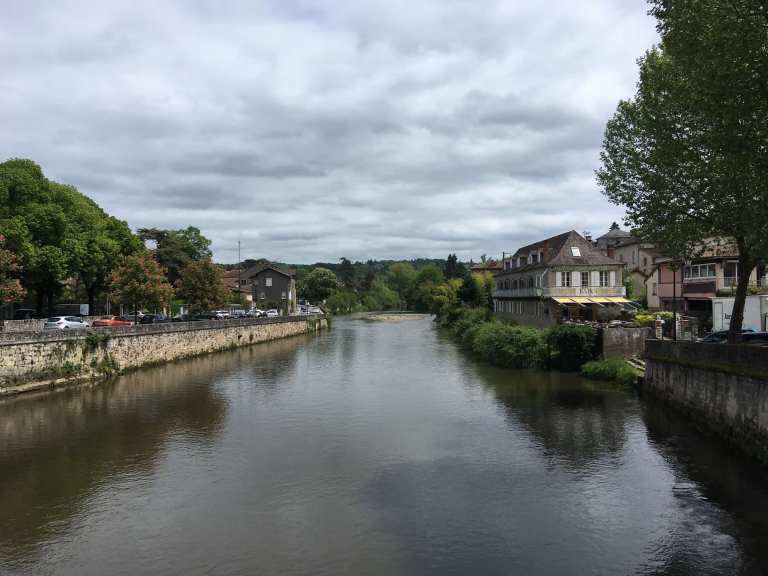 The larger town of Figeac was the first place on the agenda. We hadn’t done our homework properly, and I’d planned a drive through. However, it was too attractive not to give it more attention and so Sophie directed me towards a convenient parking area by the station (that was a first 😉), which coincidentally was a Park4night.