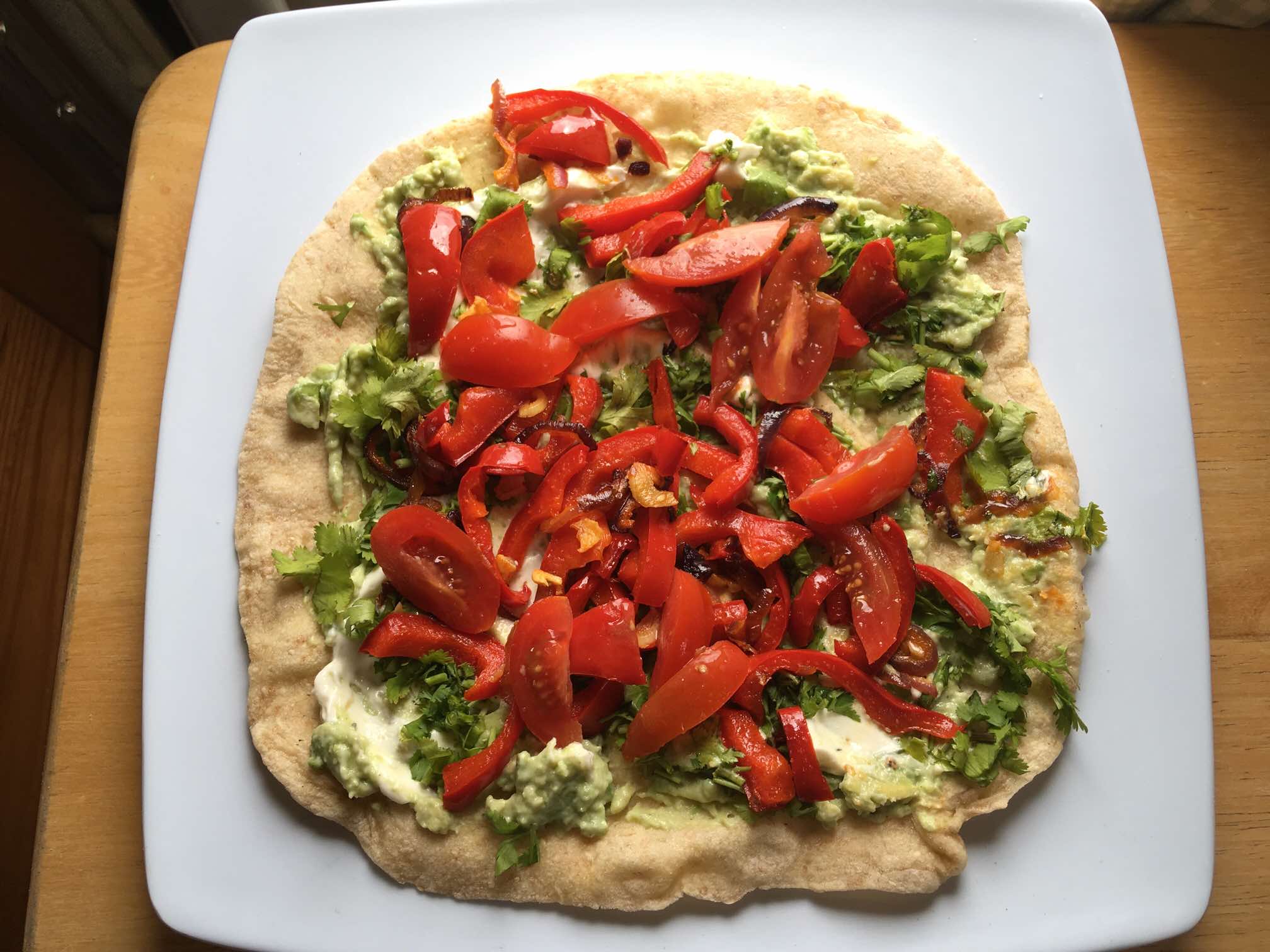 Five neighbours in all last night, and it was very quiet. Only one here by the time we surfaced, which is not unusual. It was a blogging catch-up morning, followed by Sophie’s lunch of home-made avocado, fried red pepper and onion wraps, using the dough she made and refrigerated a few days ago.