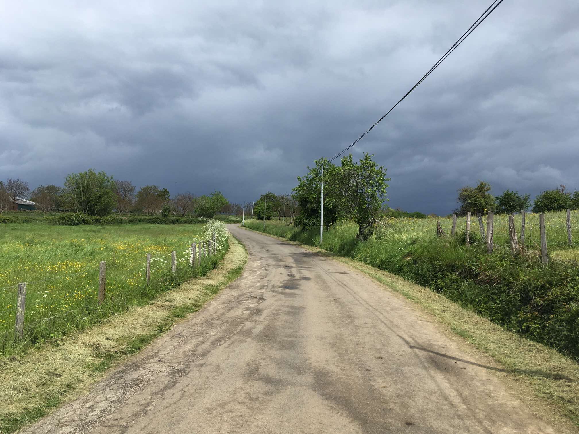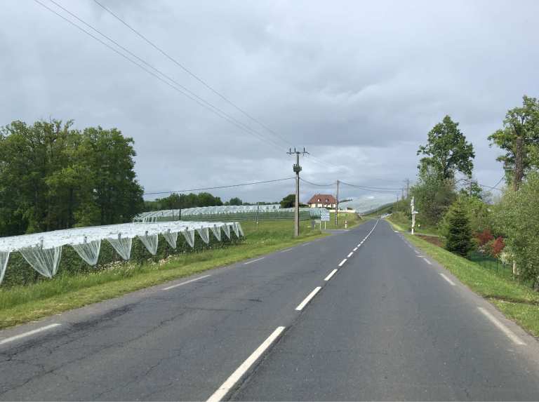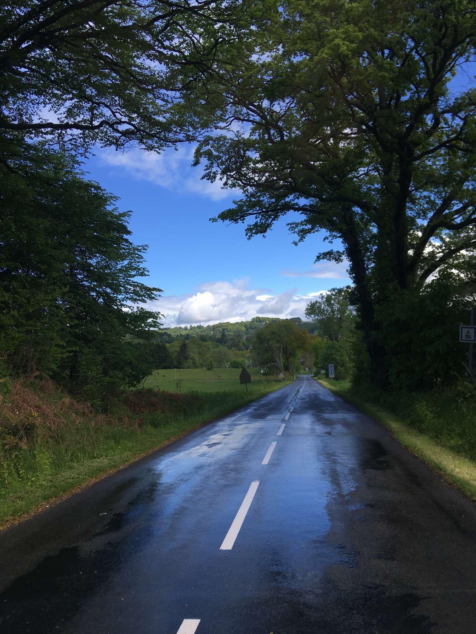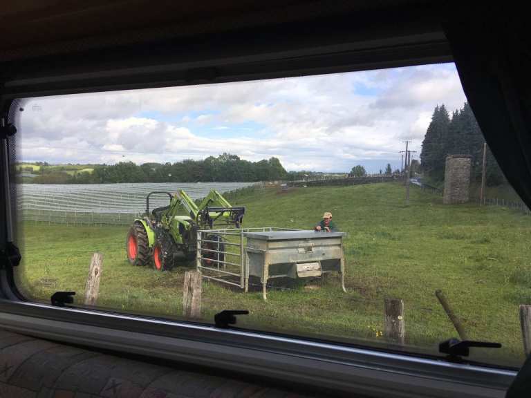 Seeing a motorhome aire indicated in a tiny village as we drove past we thought it worth checking out, as these can often be very quiet and picturesque. The one here at Concèze definitely fits that description, and after Sophie directed me to the optimal parking place we are now enjoying great distant views across orchards and distant hills and valleys. Looking forward to another quiet night, and hoping the neighbour’s dog gets a good night’s sleep tonight too, as we don’t want him waking us up 😉.
